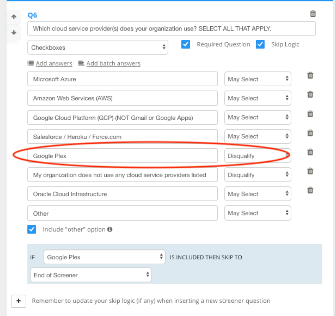3. Include inapplicable response options in checkbox questions to disqualify users who are selecting all options without thought