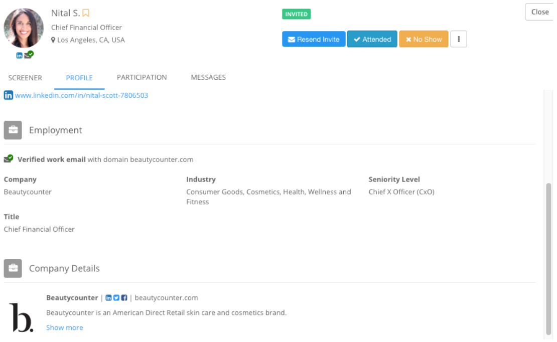 One of the features that makes Respondent best-in-class for B2B market research recruitment is our employment verification. Respondents are required to verify their work before they’re ever able to fill out a B2B screening survey, and several data points on their participant profiles are pulled directly from their LinkedIn.